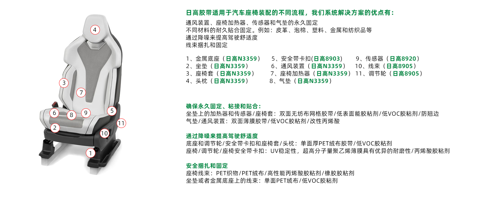 汽車座椅膠帶解決方案